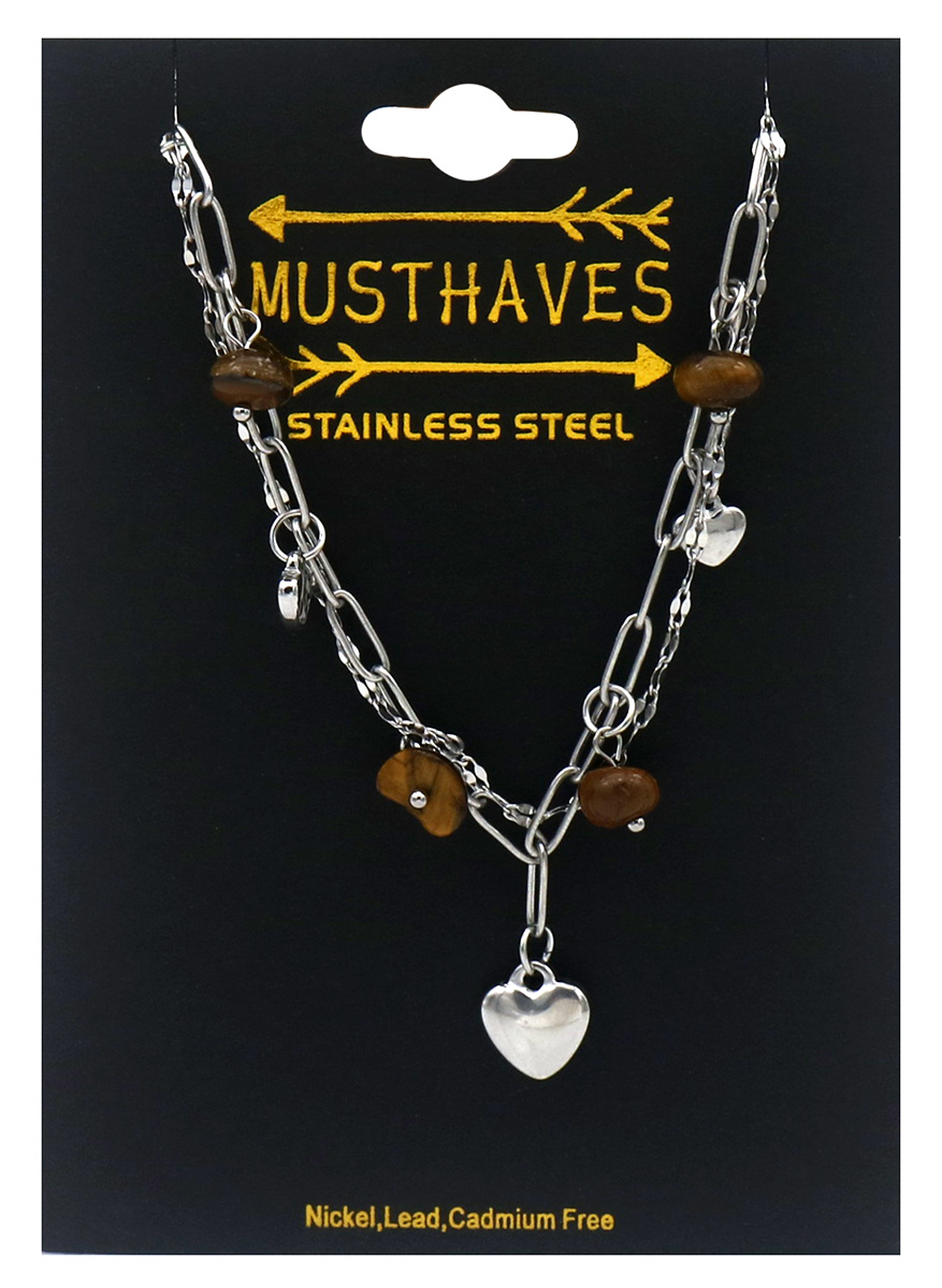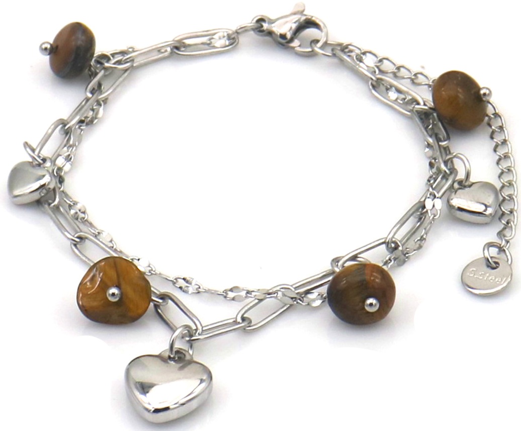Informations sur le produit "A-B22.3 B2583-032S-3 S. Steel Bracelet Hearts - Stones 16-21cm Brown"