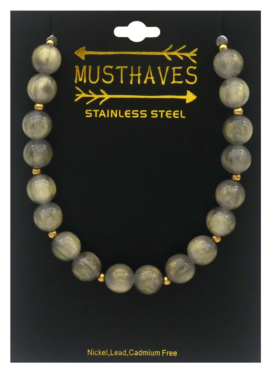 Informations sur le produit "A-C26.1 N1144-008-7 S. Steel Necklace 10mm Beads 40-45cm Grey"