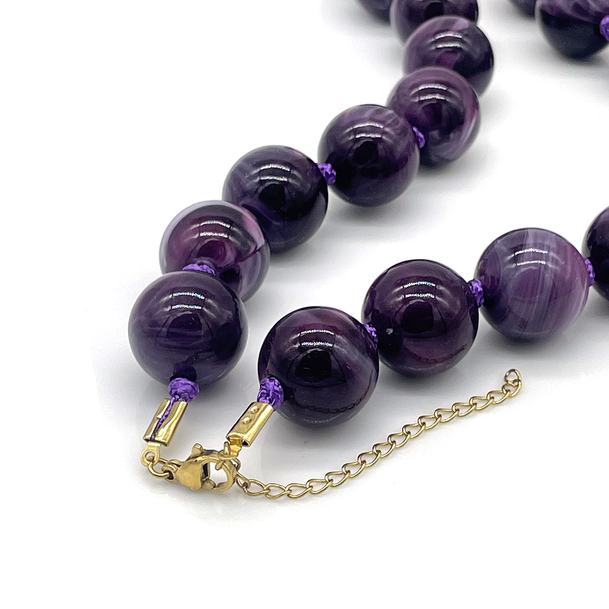 Présentation du collier A-D12.1 N2582-017-7, un superbe accessoire qui allie sans effort élégance et style moderne. Cette pièce exquise présente des perles acryliques vibrantes de 15 mm dans une riche nuance de violet, ajoutant une touche de couleur à n'importe quelle tenue.