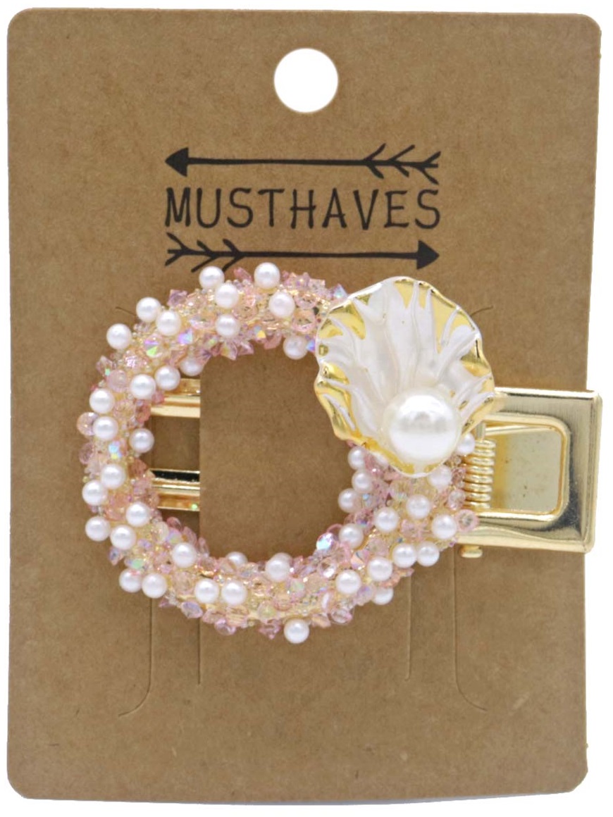 A-E24.1 H814-001-5 Hair Clip 5x4cm Pearls Pink