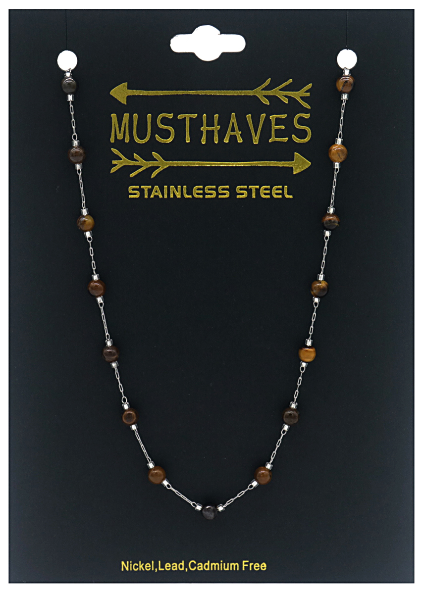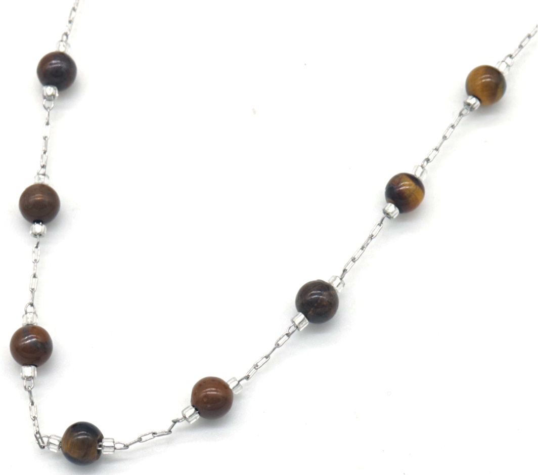 B-C2.2 N835-025S S. Steel Necklace Tiger Eye