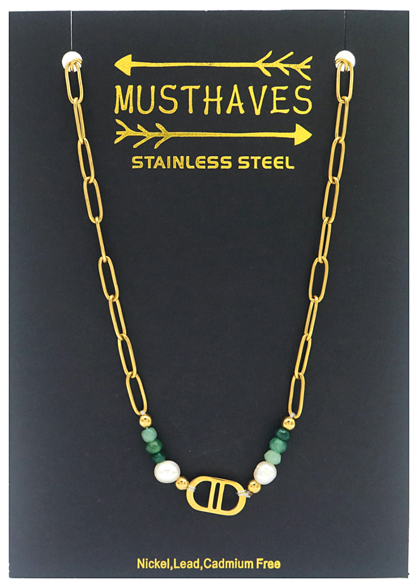 Ce collier se marie sans effort avec des tenues décontractées et formelles. La base en acier inoxydable garantit une tenue fiable, tandis que la perle d'eau douce aux tons verts ajoute une subtile touche de couleur et une touche d'individualité. Idéal comme cadeau attentionné ou comme ajout raffiné à votre propre collection.