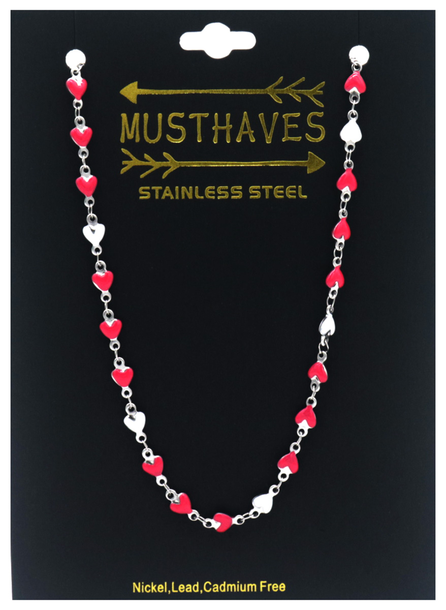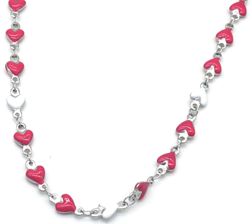B-D15.3 N835-028S S. Steel Necklace Hearts Pink