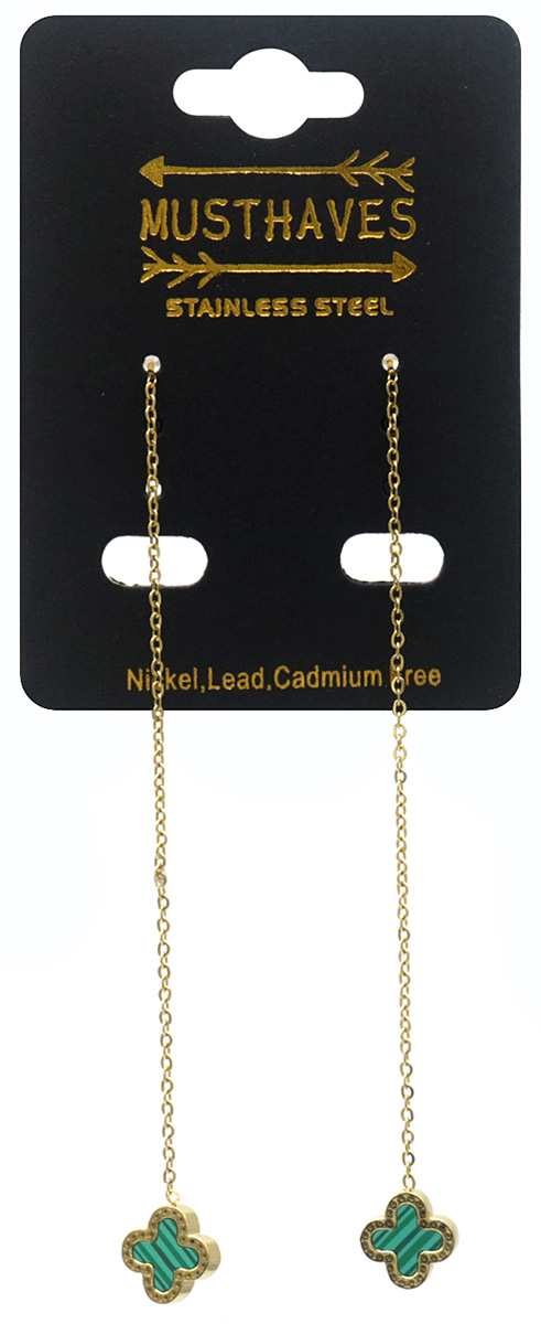 B-D6.3 E089-004G S. Steel Pull Through Earrings Green