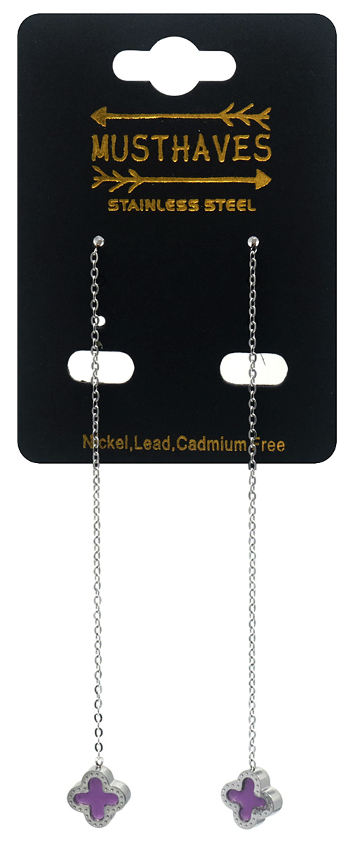 B-E6.3 E089-004S S. Steel Pull Through Earrings Purple