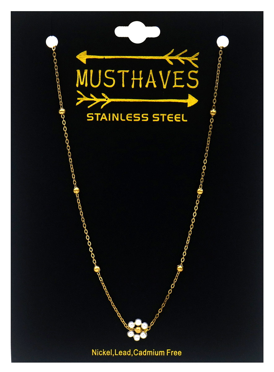Informations sur le produit "B-E9.1 N2616-010G S. Steel Necklace Flower Pearls 40-45cm"