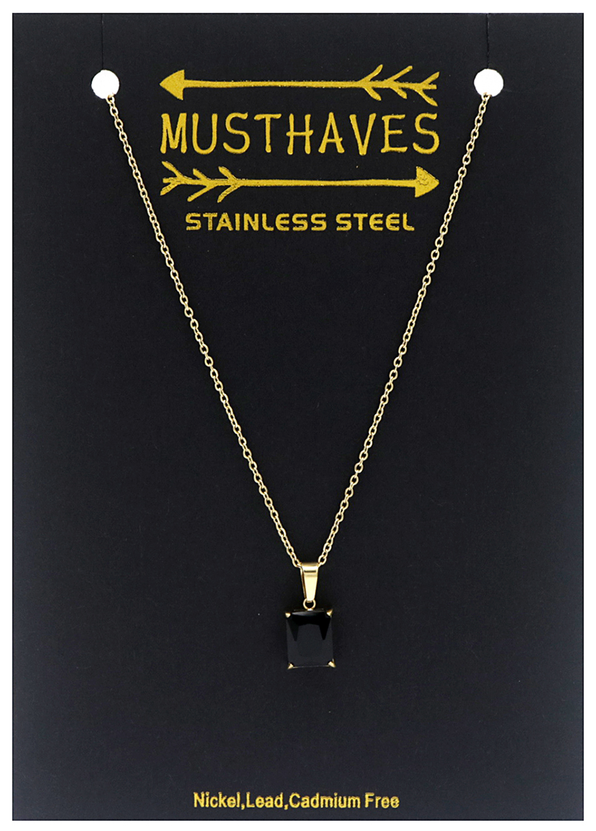 B-F6.3 N042-015G S. Steel Neclace with 1cm CZ Black