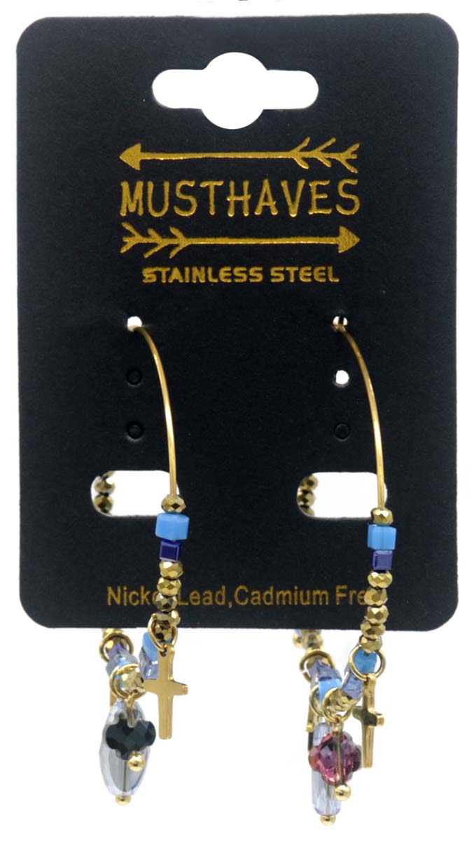 Informations sur le produit "C-A17.5 E221-498 No. 4 S. Steel Glassbead Earrings 4x5.5cm Blue"
