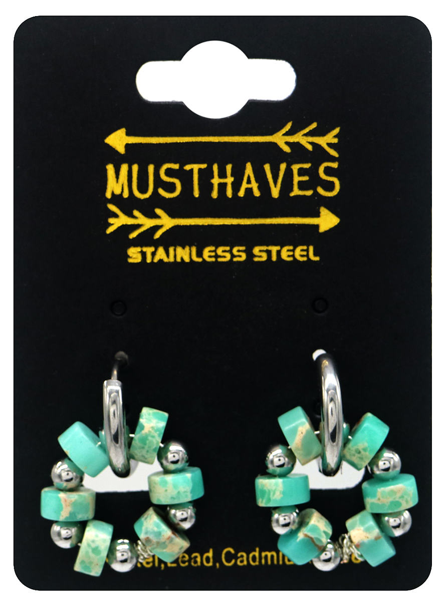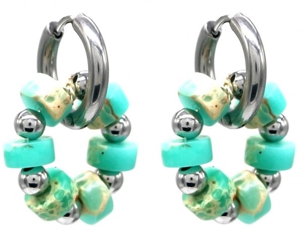 Informations sur le produit "C-A6.2 E062-015S S. Steel Earrings Stones Green 1.5x2.5cm"