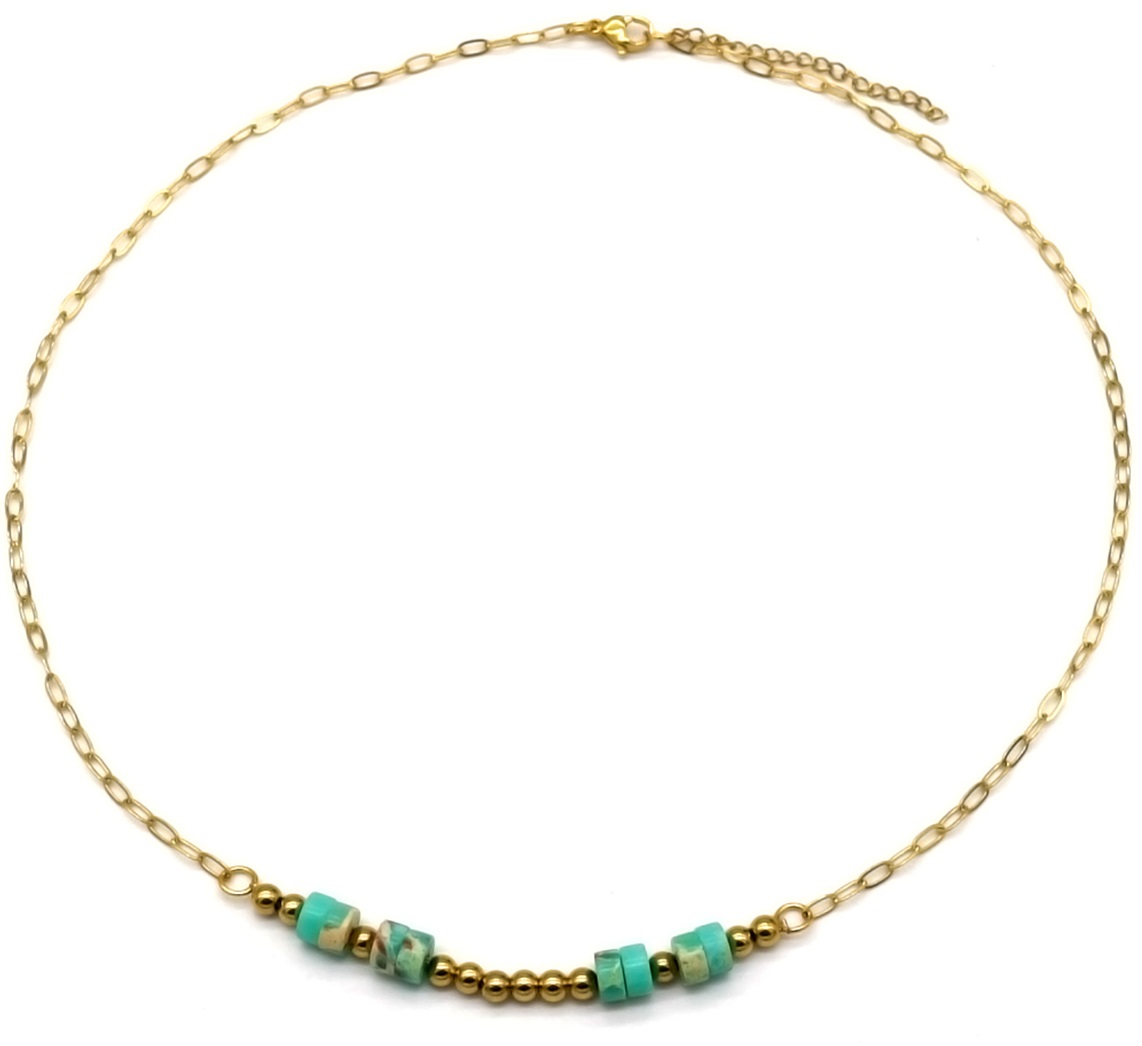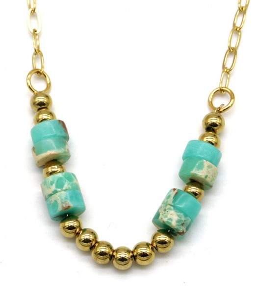 Informations sur le produit "C-B15.3 N062-013G S. Steel Necklace Stones Turqoise"