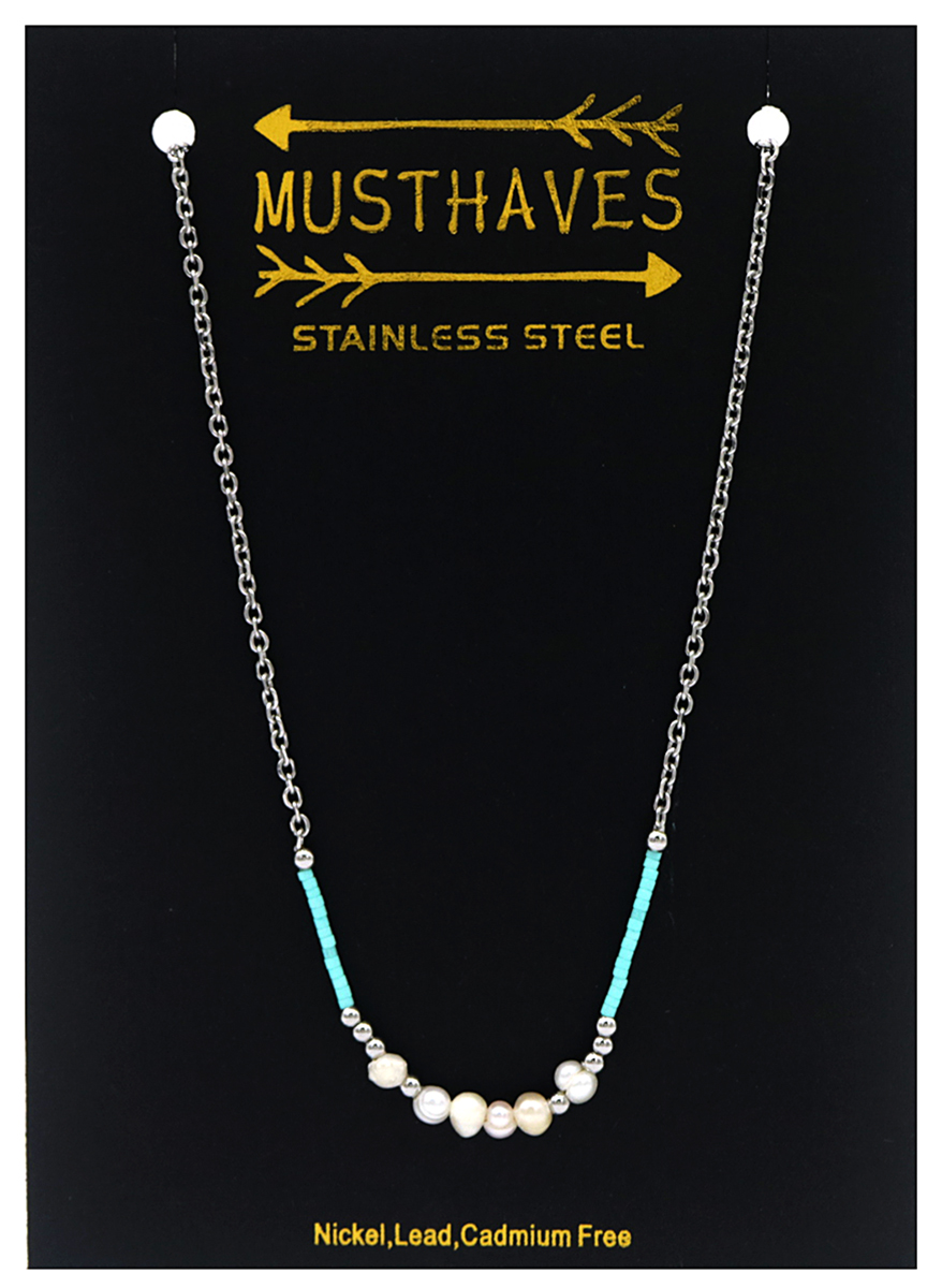 C-B2.2 NA221-103S S. Steel Necklace Glassbeads Freshwater Pearls 40-45cm