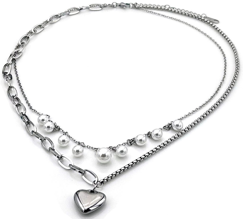 Informations sur le produit "C-E11.2 N1131-003S S. Steel Necklace Layered Heart - Pearls"