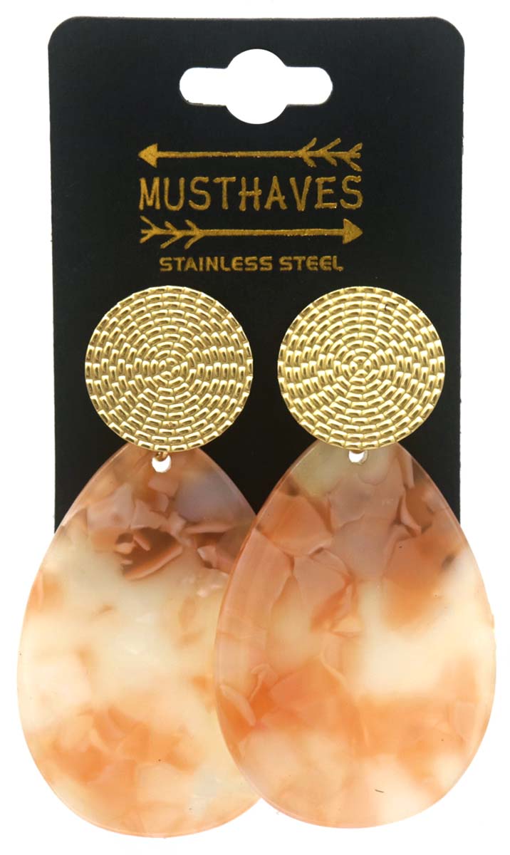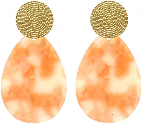 D-D18.2 E221-536 No. 8 S. Steel Earrings 6.5x3.5cm Orange