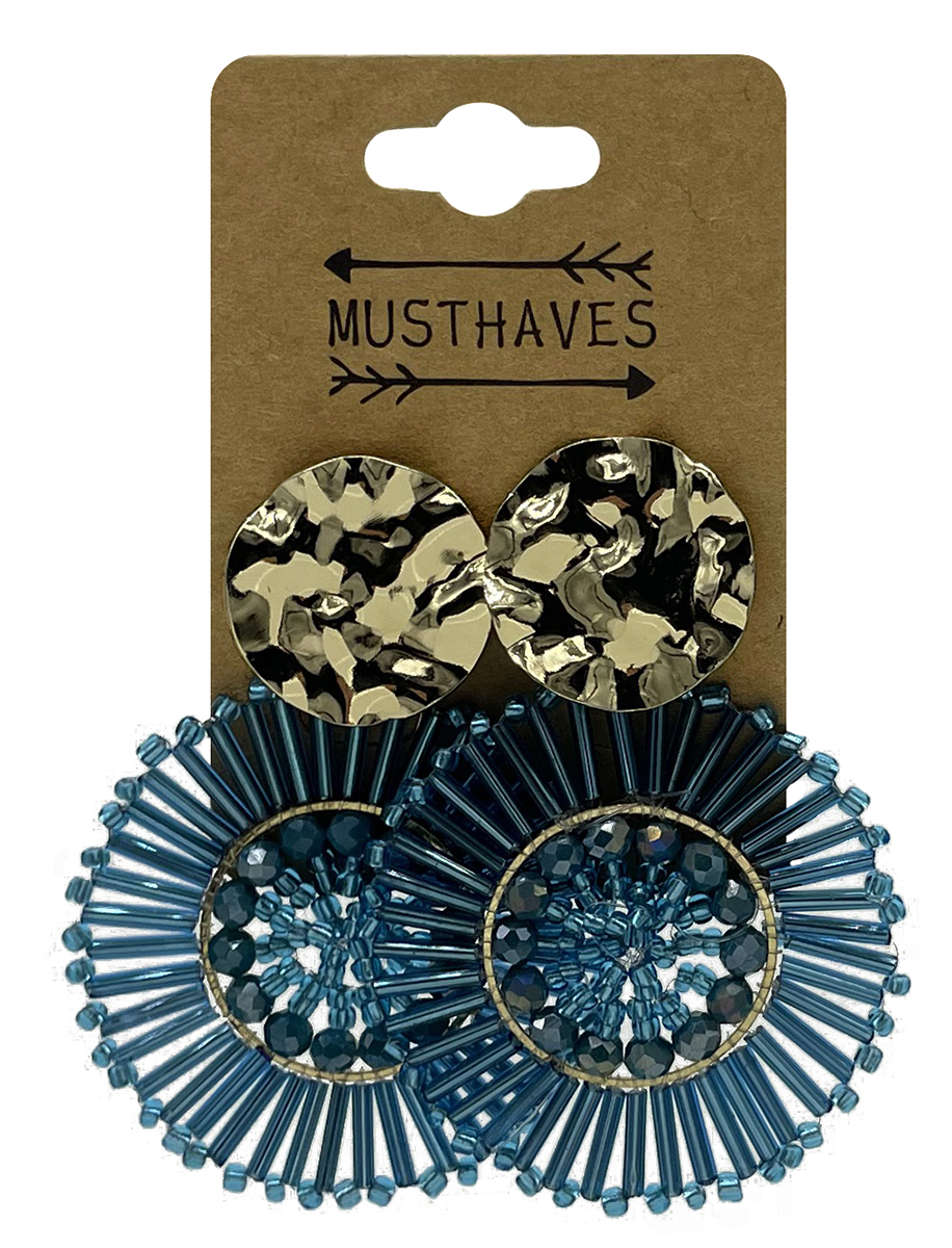 E-B19.4 E2591-130-3 Earrings Faceted Glass Beads 6x4.5cm Blue