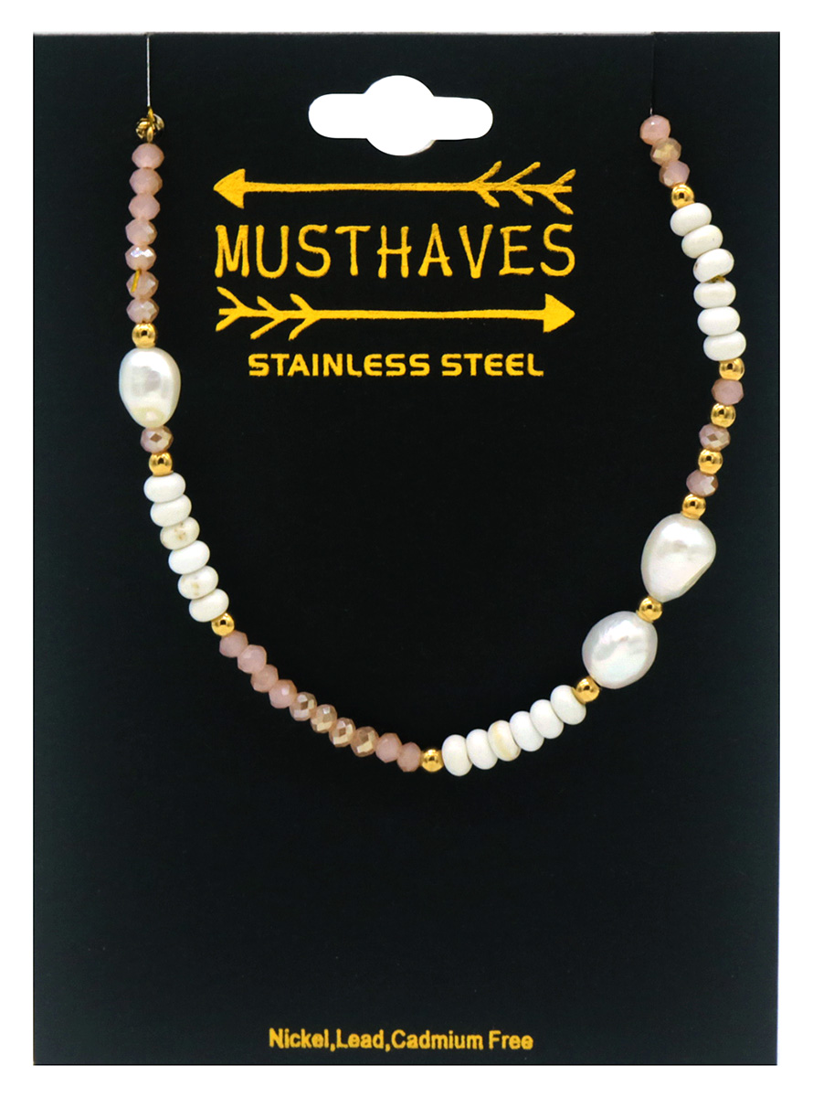 E-C7.2 B2583-025G S. Steel Bracelet Glassbeads - Pearls 16-21cm