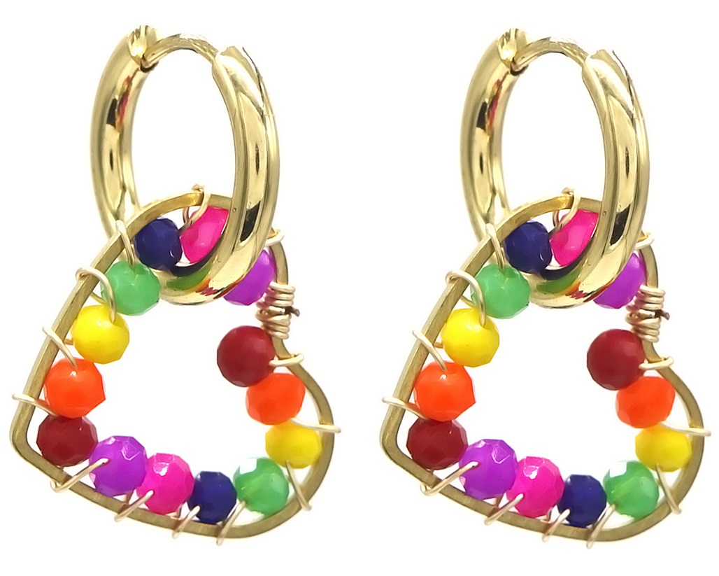 Informations sur le produit "E-D18.1 E221-417G S. Steel Earrings Heart 1.5x3cm Multi"
