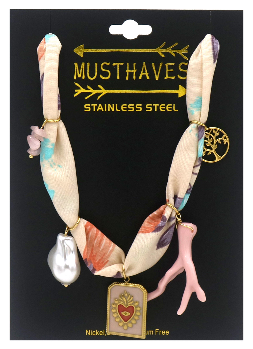 Informations sur le produit "E-D21.2 N098-038 Fabric Necklace S. Steel Charms 40-45cm"
