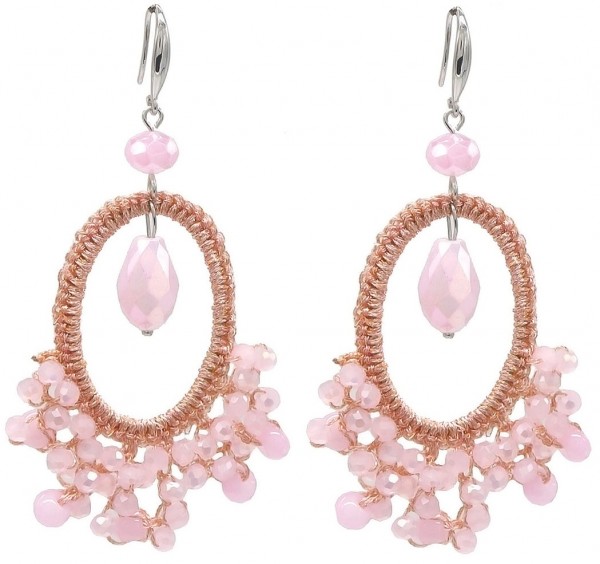 E-D7.3 E007-053D Earrings Faceted Glass 8.5x3cm Pink