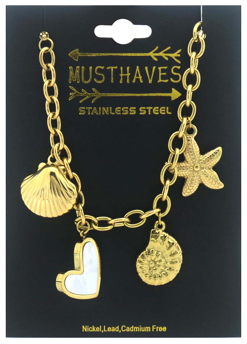 E-F9.3 B2503-006G S. Steel Bracelet Charms MOP