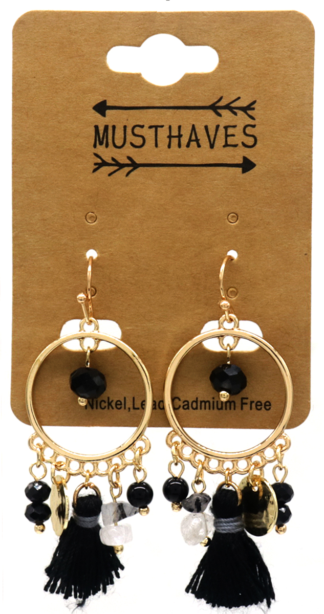 F-B20.2 E1660-011 Earrings Tassels 5x2cm Black
