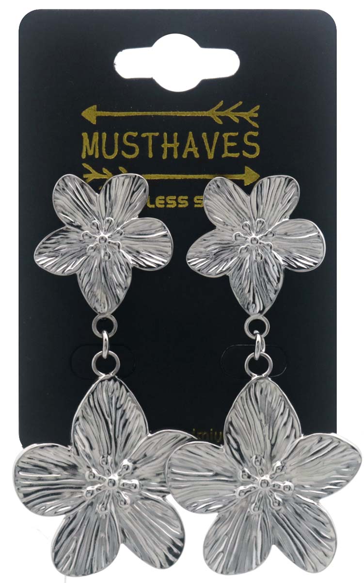 F-B5.3 E2503-014S S. Steel Earrings Flowers 5.5x2.5cm