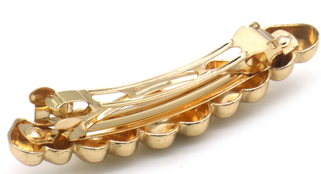Présentation de la pince à cheveux en métal F-E11.2 H1039-011G dans un charmant design en forme de cœur, mesurant 8 cm. Cet accessoire élégant est parfait pour ajouter une touche d'élégance à n'importe quelle coiffure. Fabriquée à partir de métal de haute qualité, la pince offre durabilité et maintien sûr, garantissant que vos cheveux restent magnifiquement en place tout au long de la journée. Le motif cœur ajoute une touche ludique mais sophistiquée, ce qui en fait un choix idéal pour les occasions décontractées et formelles. Que vous vous habilliez pour un événement spécial ou que vous cherchiez simplement à rehausser votre look de tous les jours, cette pince à cheveux est un ajout incontournable à votre collection d'accessoires. Adoptez votre style avec la pince à cheveux en métal F-E11.2 H1039-011G et laissez briller votre personnalité !