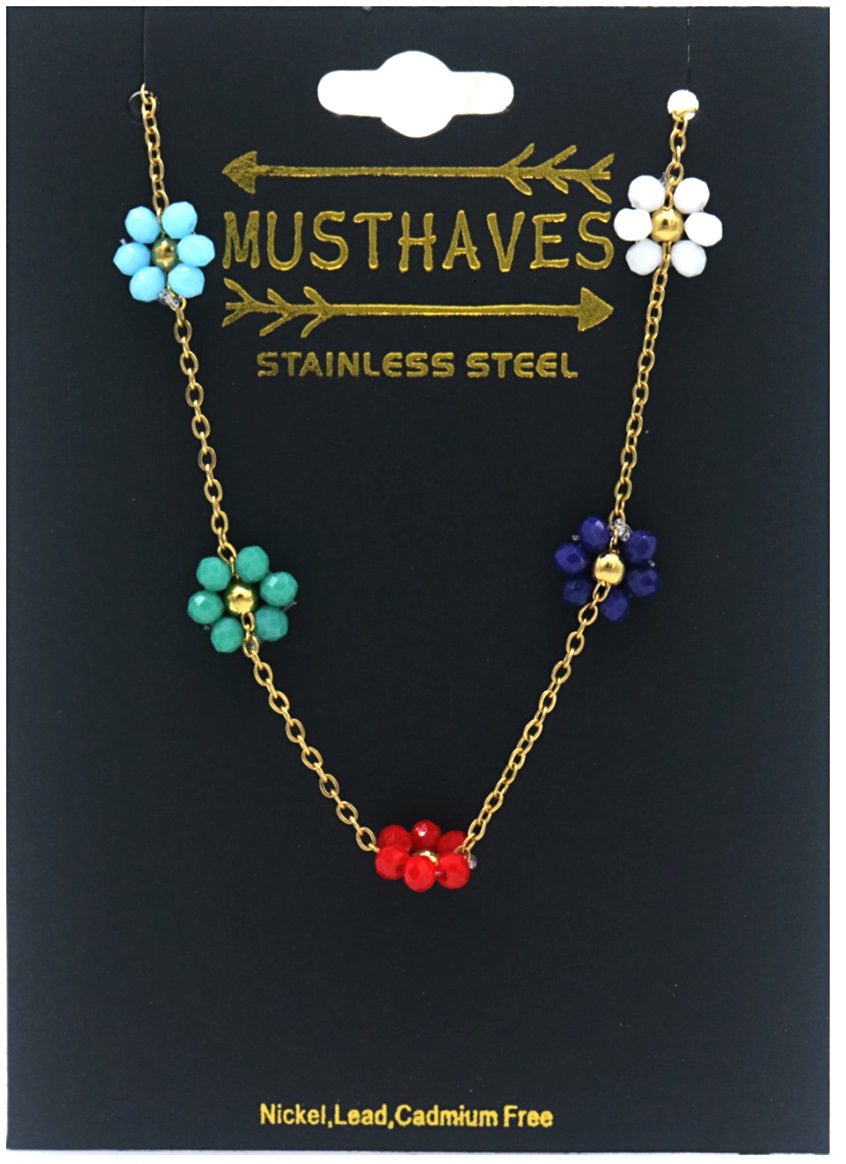 F-E8.3 B835-033G S. Steel Bracelet Flowers Multi