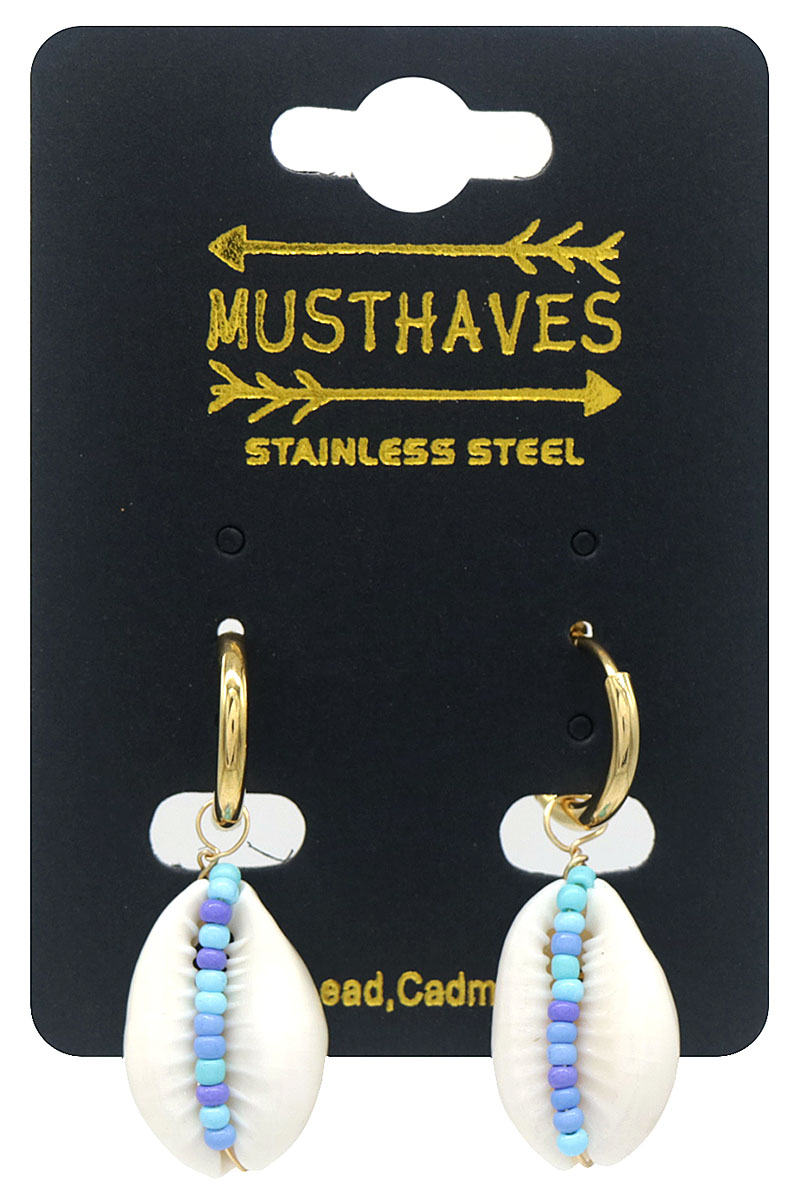 Informations sur le produit "G-B20.3 E221-562-4 S. Steel Earrings Shell 3.5cm Blue"