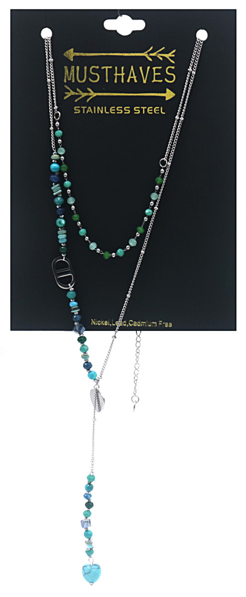 G-D21.1 N221-323S No. 1 S. Steel Necklace Stones Blue