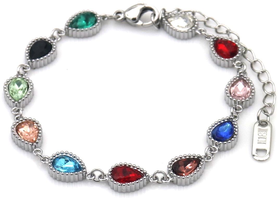G-E17.5 B25106-090S S. Steel Bracelets Crystals 16-21cm Multi Color