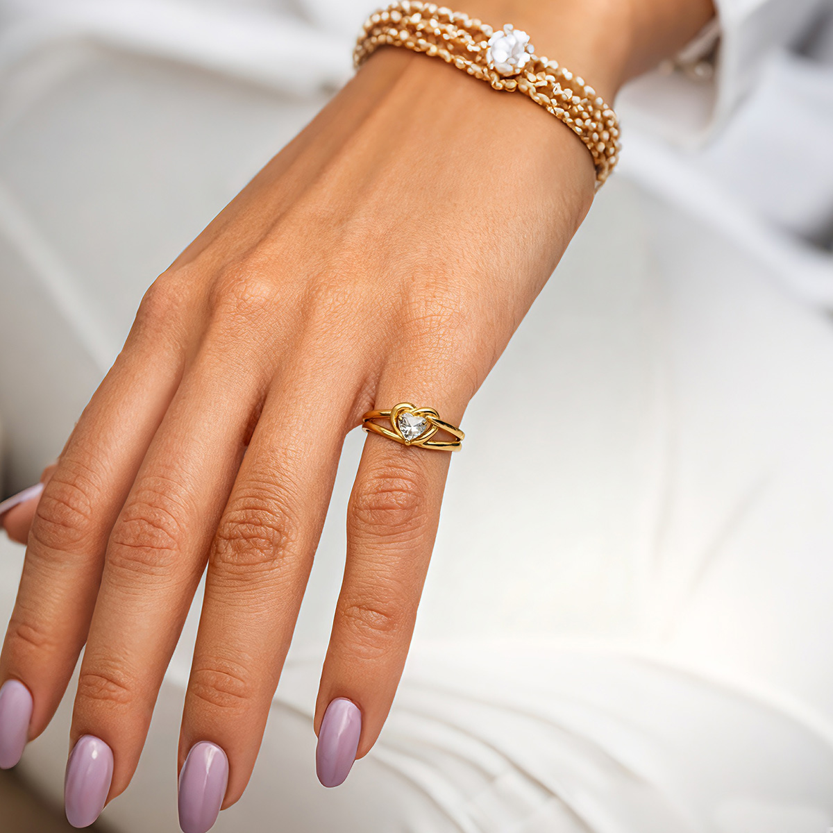 Présentation de la bague en acier inoxydable G-E5.4 R2591-061G avec cristal cœur – un superbe bijou qui allie magnifiquement élégance et polyvalence. Fabriquée en acier inoxydable de haute qualité, cette bague est conçue pour résister à l'épreuve du temps tout en conservant son éclat radieux.