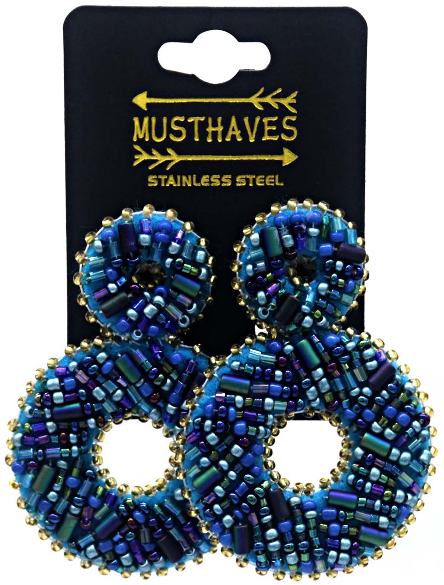 Informations sur le produit "H-A15.3 E221-502-3 S. Steel Earring Glassbeads 6cm Blue"