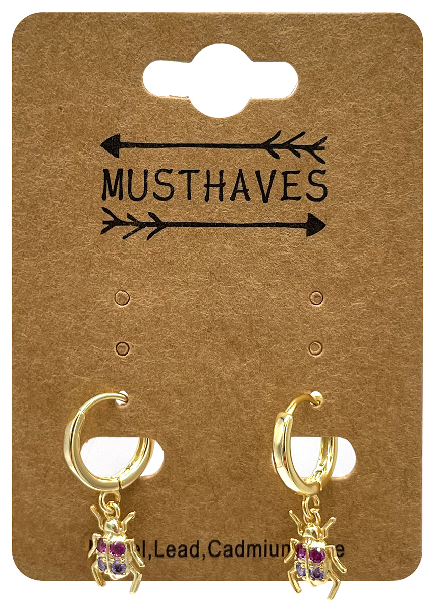 H-A18.2 EC007-035 Copper Earrings Scarab with CZ 2.5cm