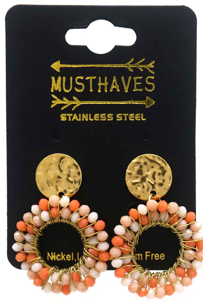 Informations sur le produit "H-A4.1 E221-473 S. Steel Earrings Glassbeads 3.5x2.5cm Orange"
