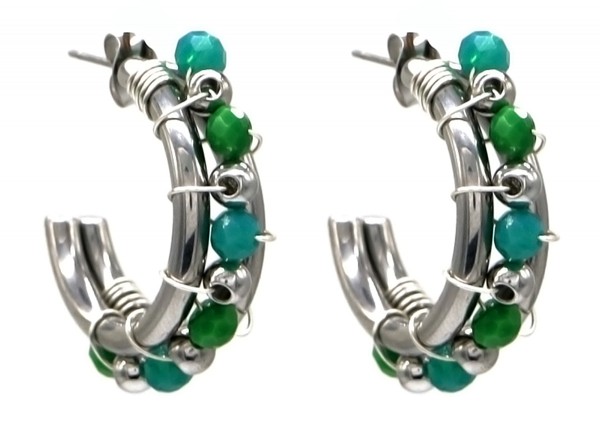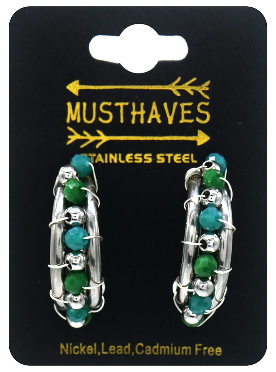 H-A4.4 E221-365S S. Steel Earrings Glassbeads Green