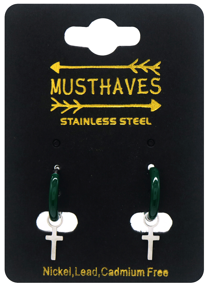Informations sur le produit "H-A6.2 E221-384S S. Steel Earrings Cross Green"