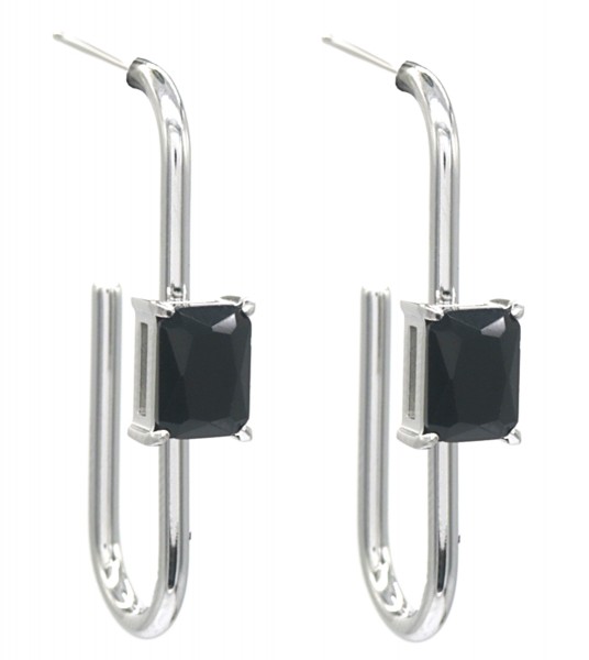 Informations sur le produit "H-B17.5 E042-008S S. Steel Earrings 4cm CZ Black"