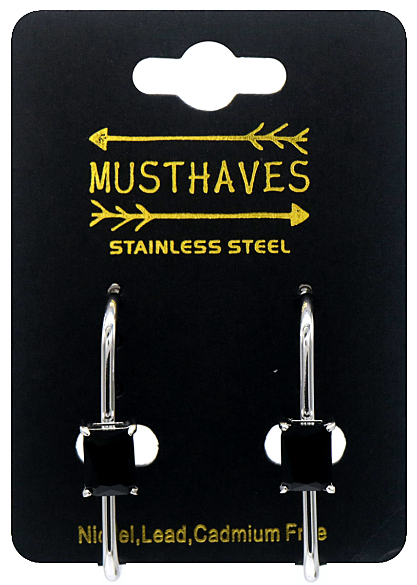 H-B17.5 E042-008S S. Steel Earrings 4cm CZ Black