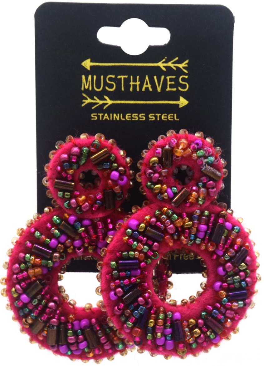 Informations sur le produit "H-B23.1 E221-502-1 S. Steel Earring Glassbeads 6cm Fuchsia"