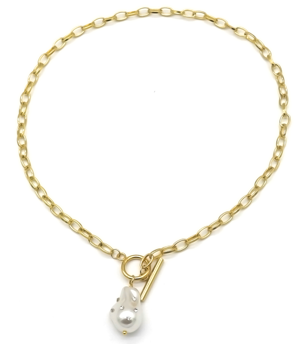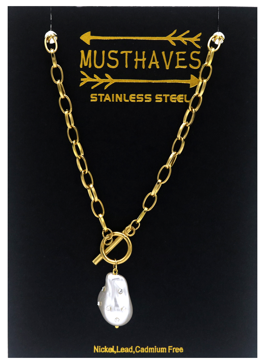 H-F22.2 N221-318G S. Steel Necklace Pearl Crystals