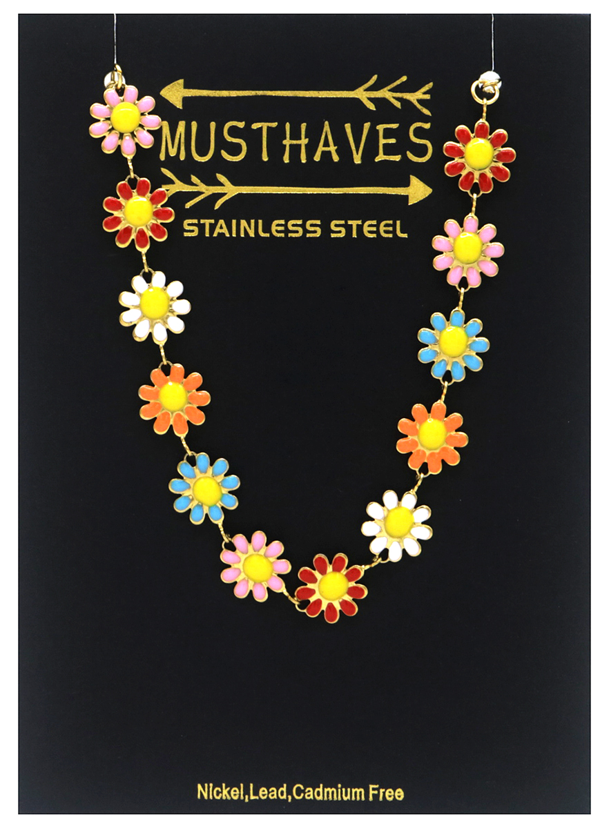H-F9.1 B68-003 S. Steel Bracelet Flowers Multi
