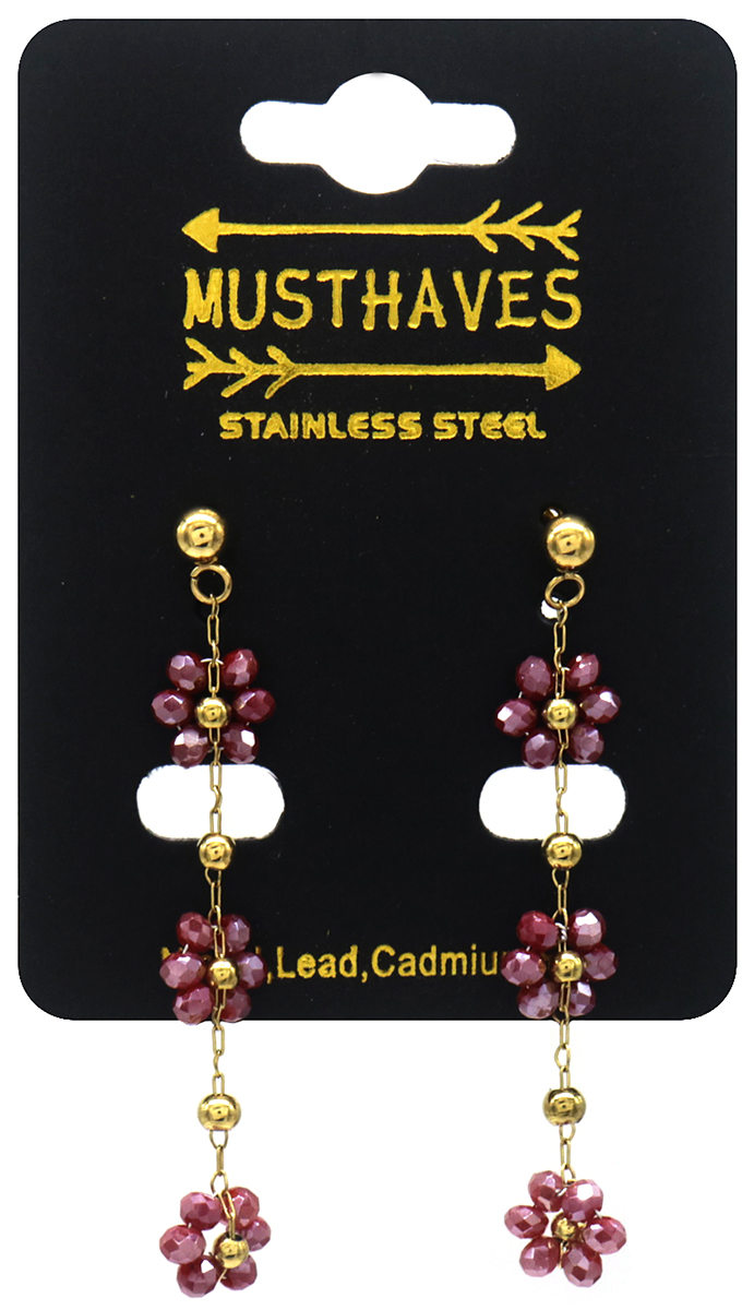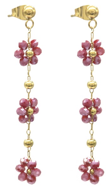 i-F18.3 E68-001 S. Steel Earrings Glass Flowers Red