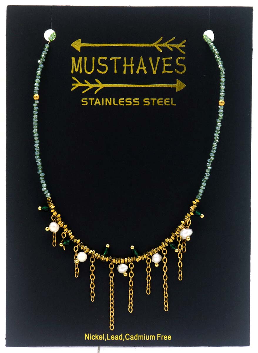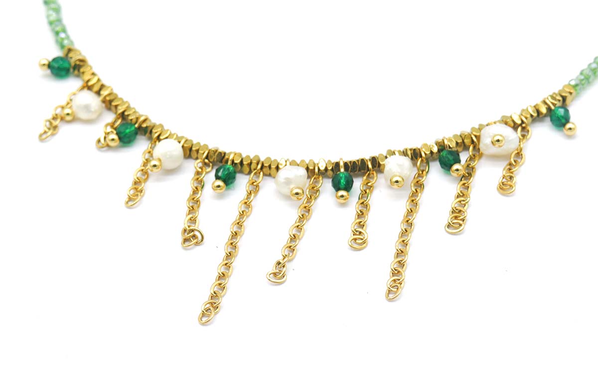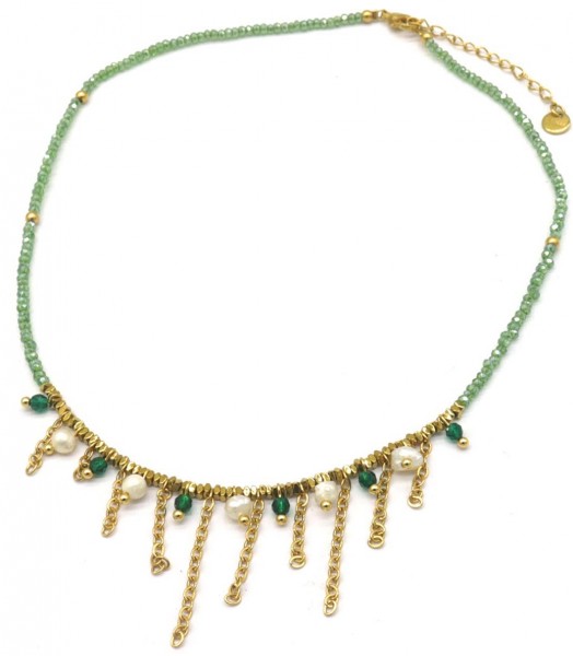 J-A4.2 N221-328 S. Steel Necklace Glassbeads Green 39-44cm