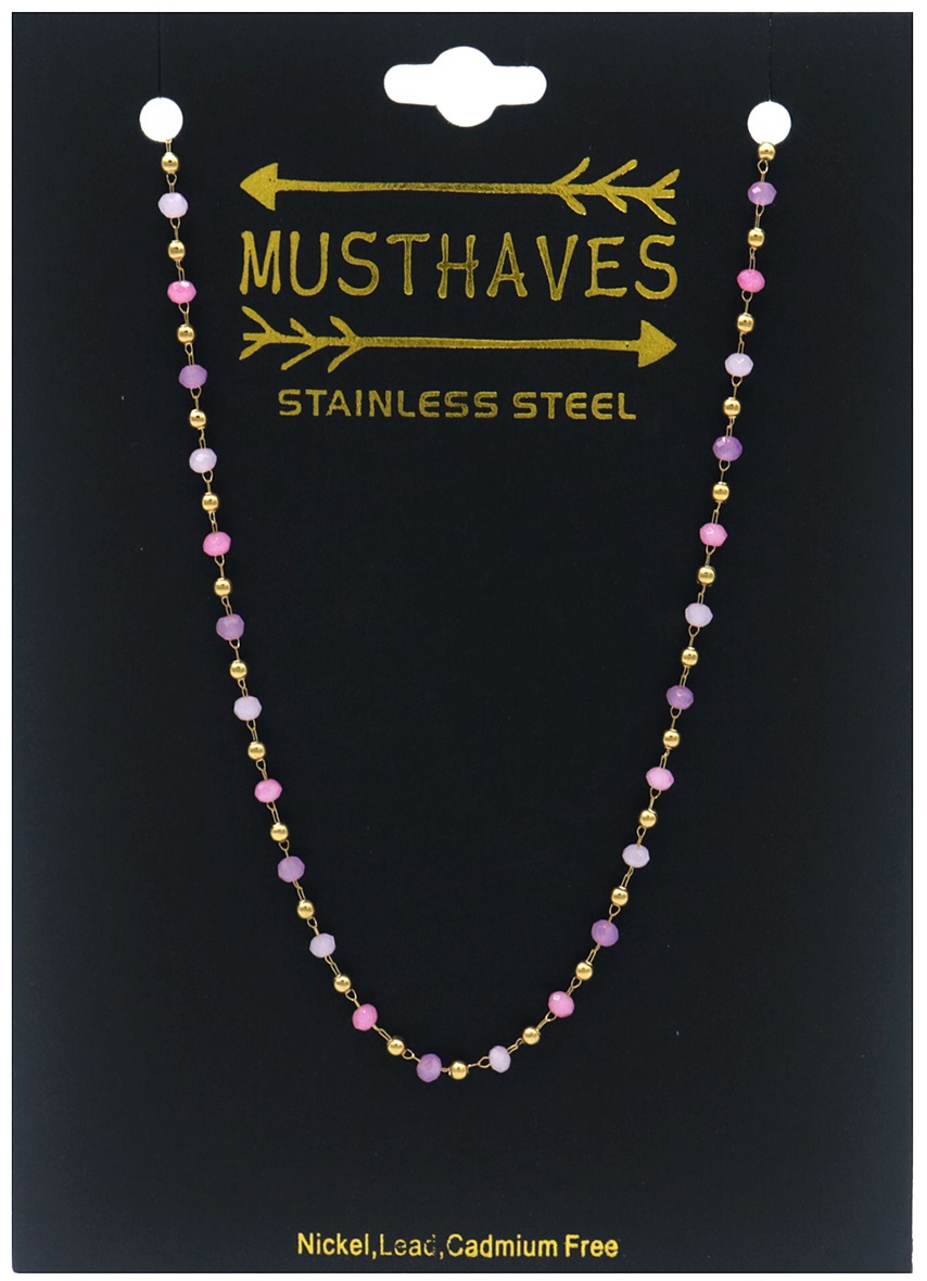 Informations sur le produit "J-D6.3 N831-006-3 S. Steel Necklace Glass Beads - Lila"