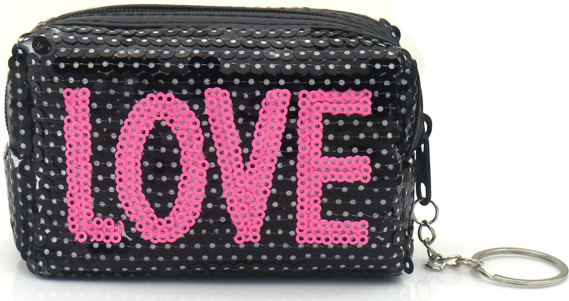 L-A3.1 KY1154-002 Keychain Wallet LOVE Sequins 10x7x4cm Black