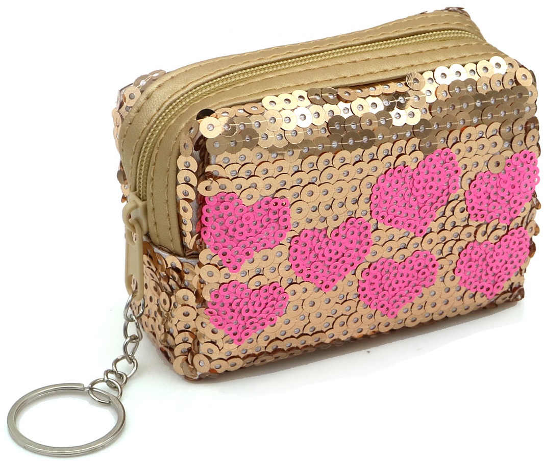 L-B3.2 KY1154-002 Keychain Wallet LOVE Sequins 10x7x4cm Gold