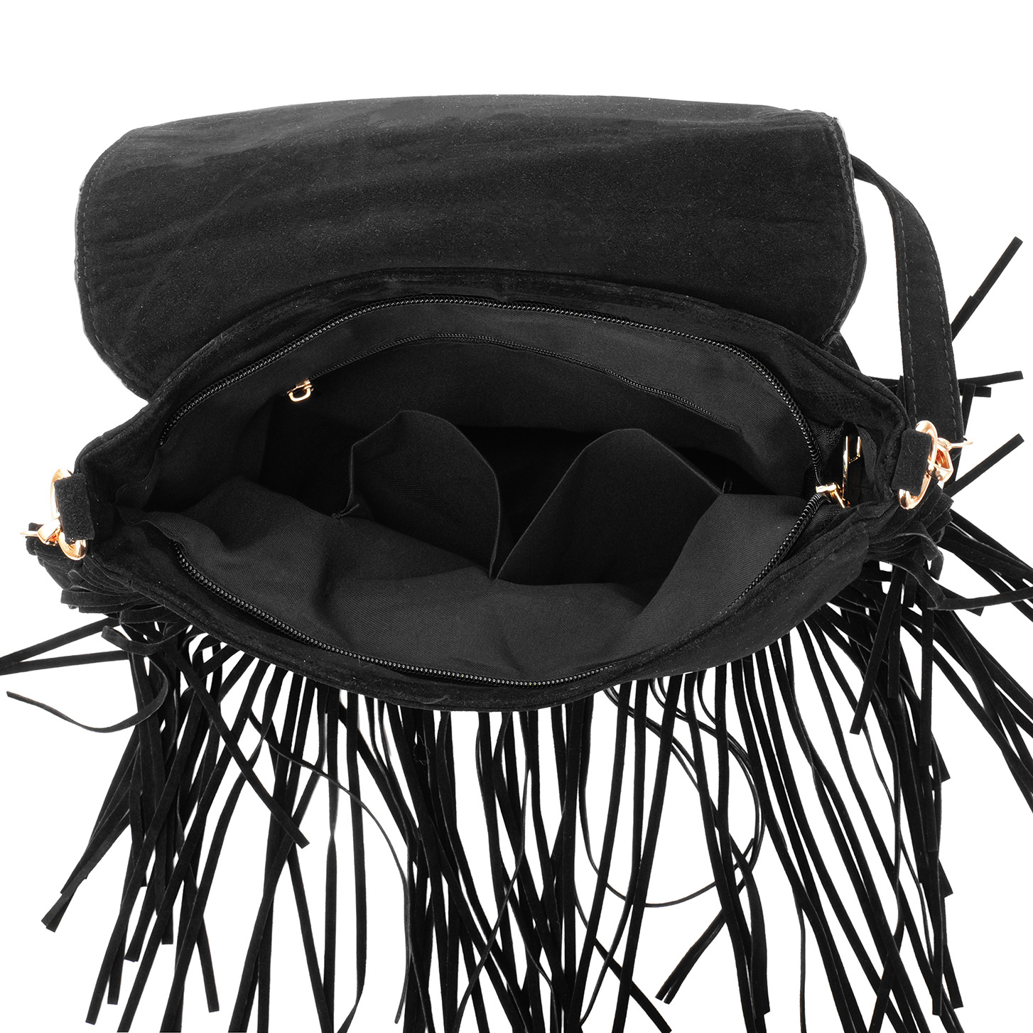 L-C6.2 BAG1122-001-1 PU Bag Fringes and Studs 30x27cm Black