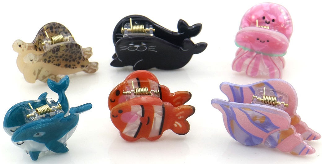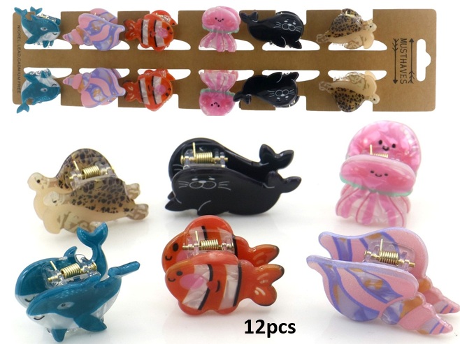 Q-C7.2 H1126-005 Hair Clips Sealife 2.5cm - 4cm - 12pcs