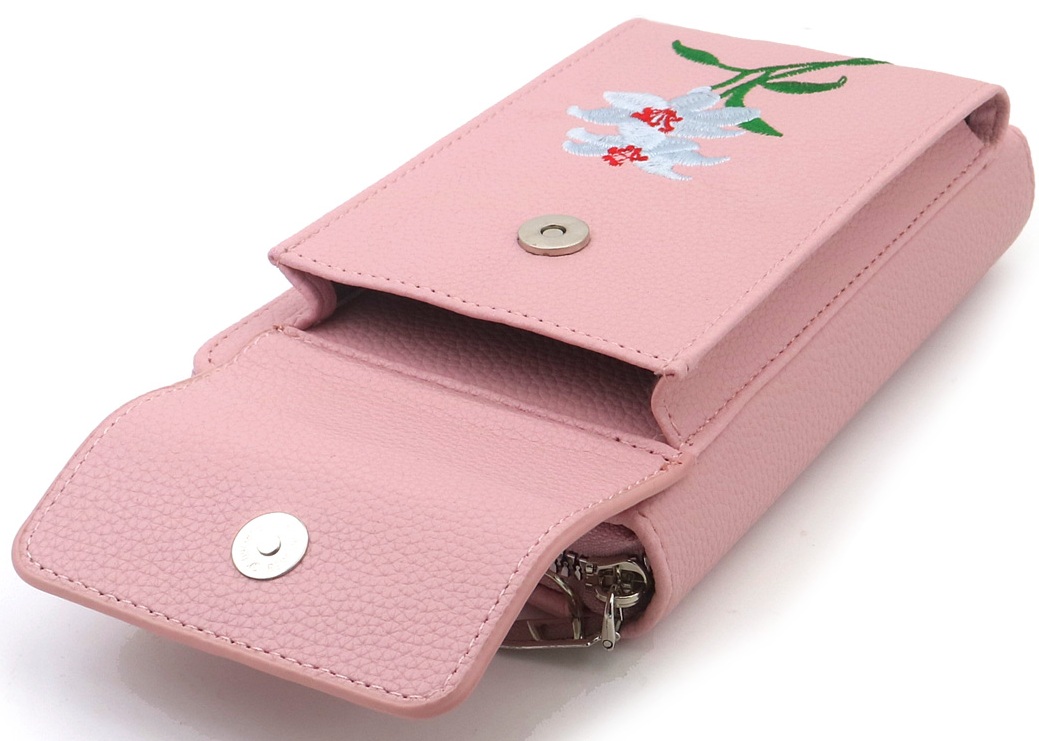 Q-K6.2 BAG1113-001-3 PU Bag Embroidered Flowers 18x10.5x5cm Pink