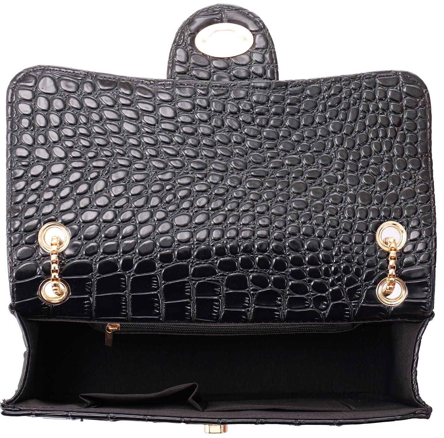 Informations sur le produit "R-E3.2 BAG1117-005-6 PU Bag Faux Crocodile 27x17x7.5cm Black"